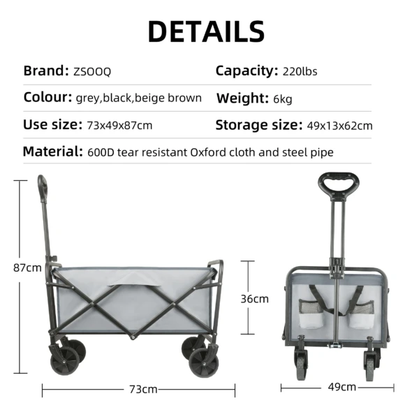 Heavy Duty Large Capacity Folding Beach Wagon Outdoor Foldable wagon for Camping Shopping Collapsible Portable Camping Equipment